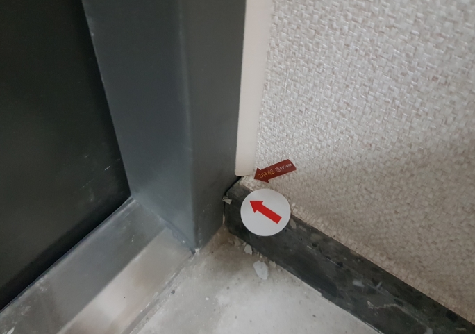 4.현관문 문틀 주위 도배 마감 상태를 확인한다.