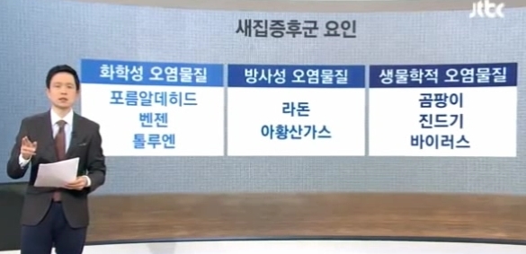 건축자재에서는 250~300여가지 휘발성 유기화합물이 새집증후군을 일으키는 주범인데요 여기에는 포름알데히드와 벤젠 , 톨루엔,클로로포름,같은 발암물질이 포함돼어 있어 지속적으로 노출될경우 눈,호흡기,피부,심장에 문제가 생길 수 있다고 합니다.