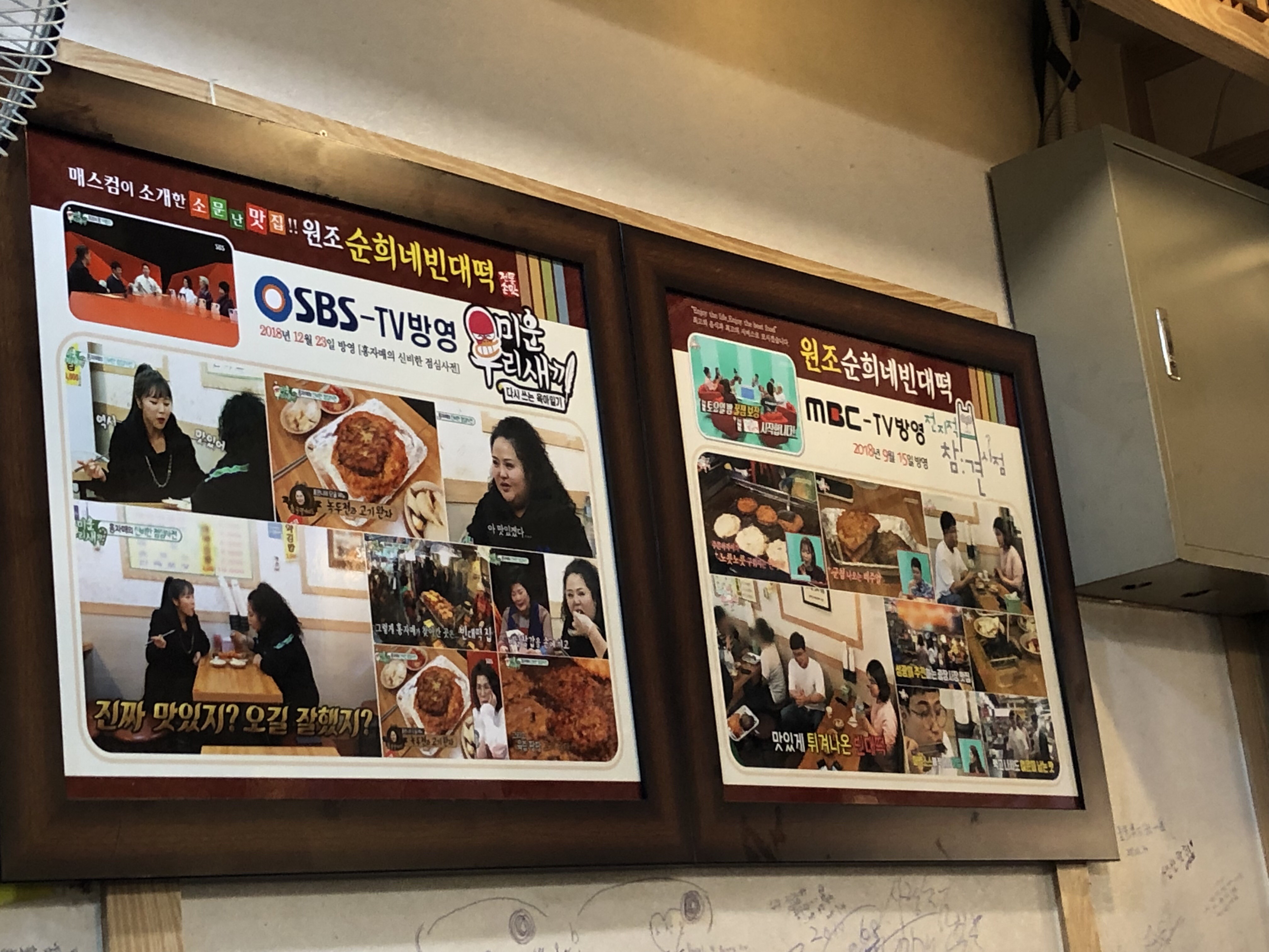 옆에 벽쪽에 보니 !!이곳은 옜날 부터 유명했는데 얼마전 2018년 미운우리새끼 홍자매가 방문하면서 더욱 인기를 탄곳이라고 하더라구요! ㅋㅋ 과연 맛이 어떤지 정말 기대를 하였습니다. ㅋㅋ 빈대떡이 정말 맛있게 튀겨나오길