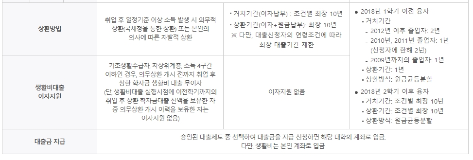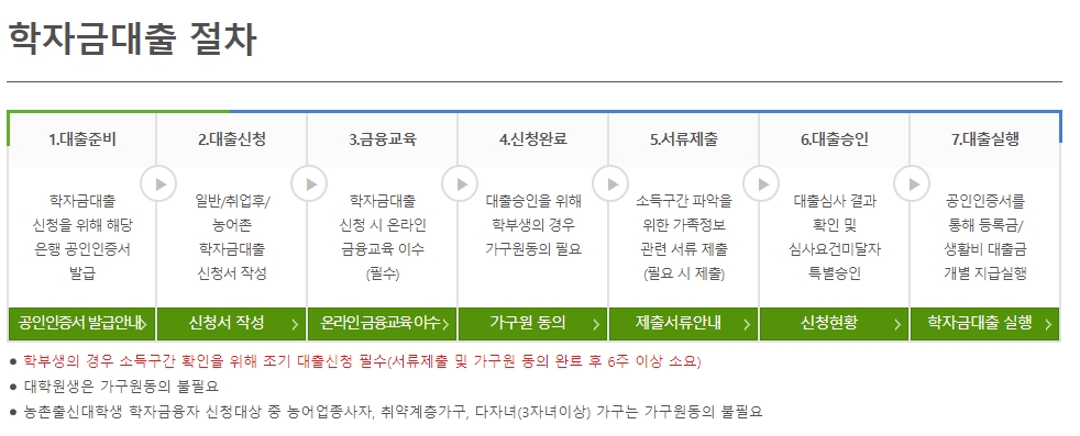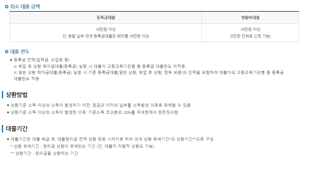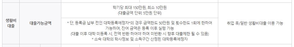 그이외 생활비대출,취업 후 상환전환대출,농촌출신대학생 학자금융자 등을