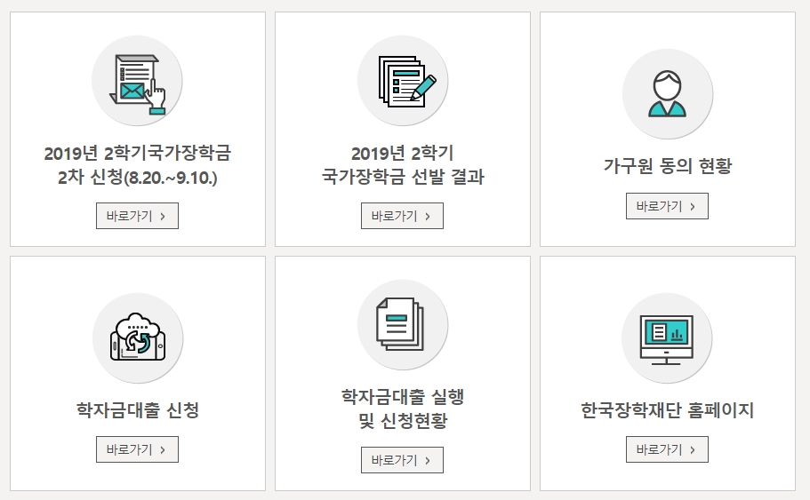 2019년 2학기 국가 장학금 2차신청, 선발결과,가구원동의현황