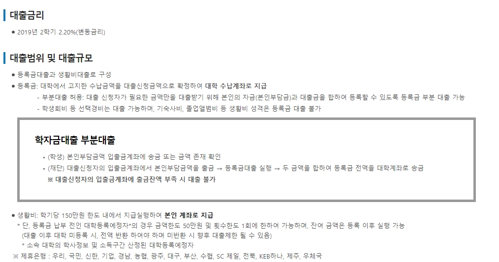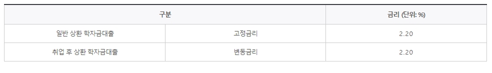 학자금 대출 금리는 고정금리,변동금리로 일반상환은 고정금리 취업 후 상환 학자금대출은 2.2 변동 금리입니다.