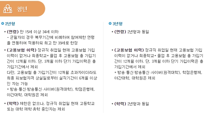 - 나이,학력,연령,고용보험 이력등 요건을 만족해야 지원대상이 됩니다.