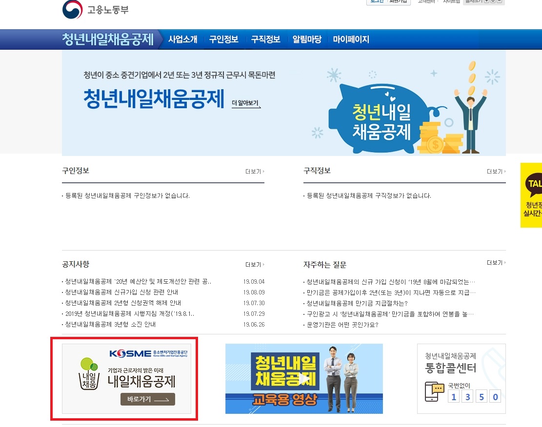 고용노동부 청년내일채움공제로 이동하도록 하겠습니다.