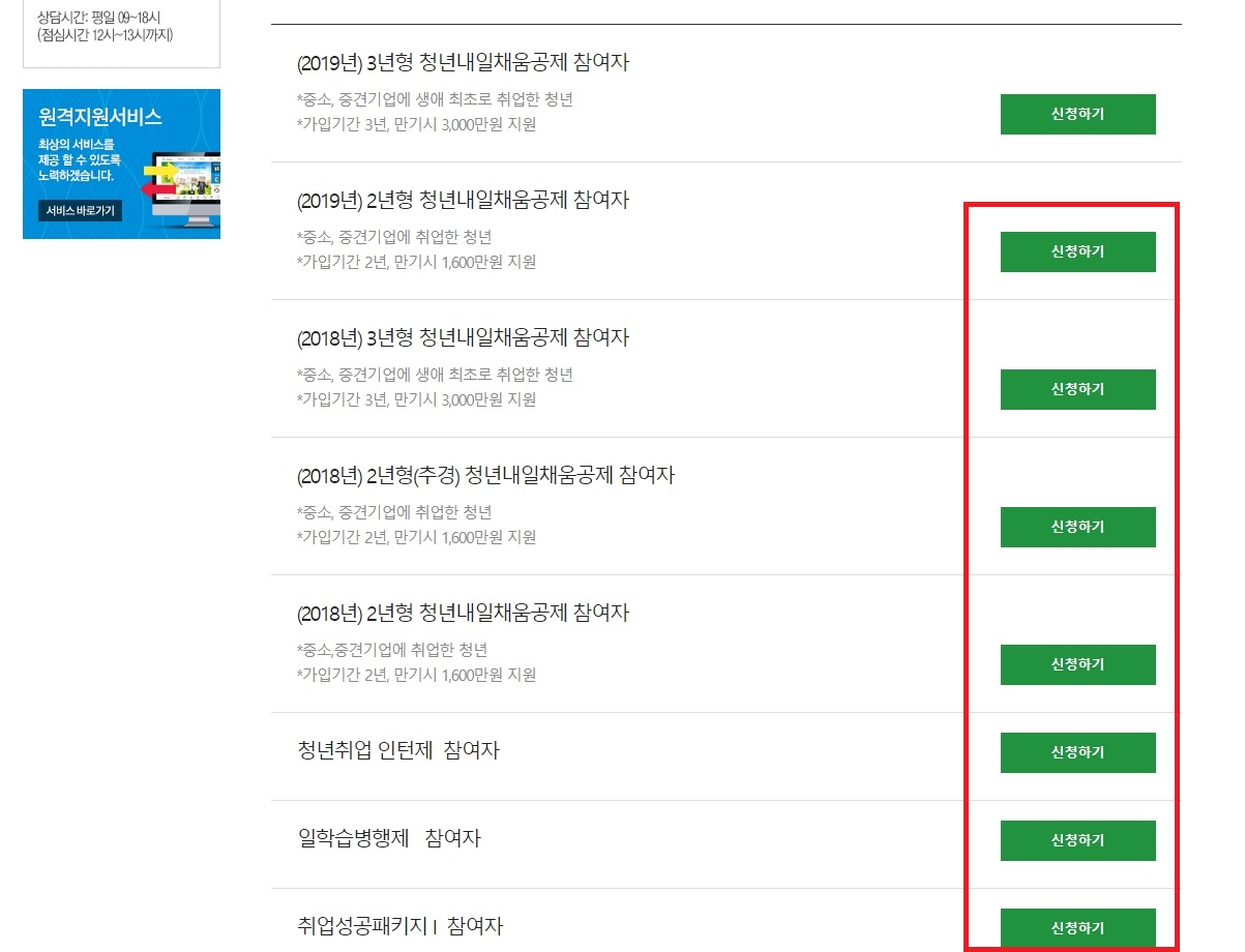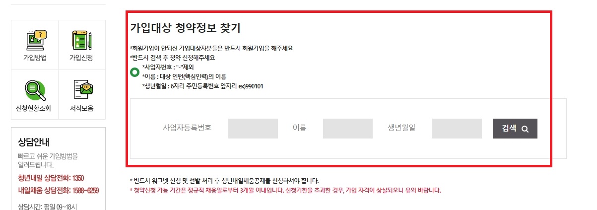 청약신청은 워크넷 참여신청을 거쳐 중소벤처기업 진흥공단 청양신청까지 완료하여야함