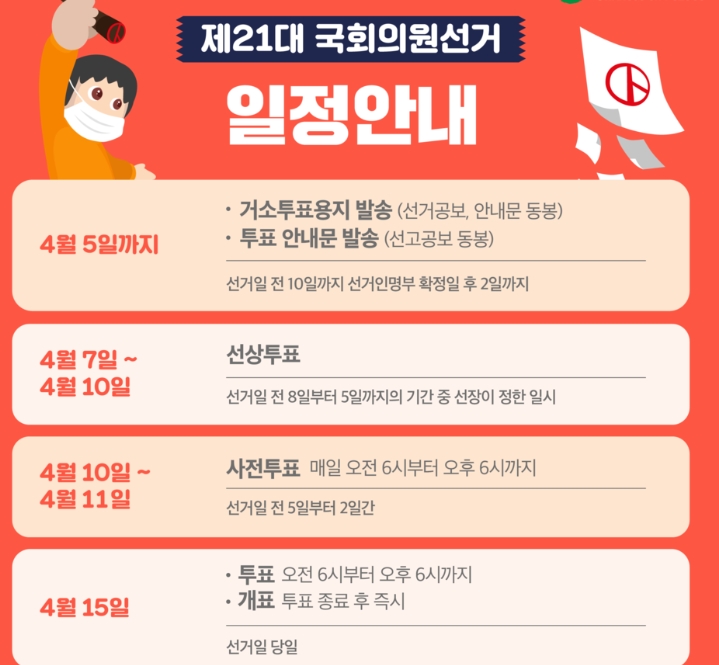 - 사전 투표 4월 10~11일 (오전 6시 ~오후6시까지