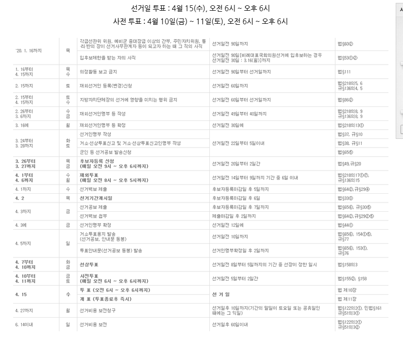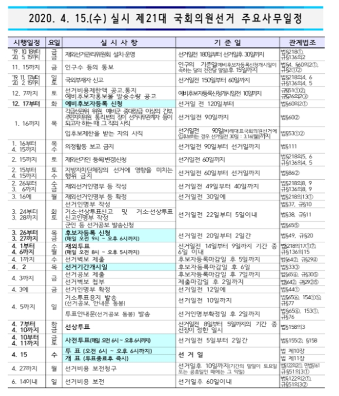 아래 내용은 국회의원 선거 주요 일정표입니다 참고하시면 됩니다.