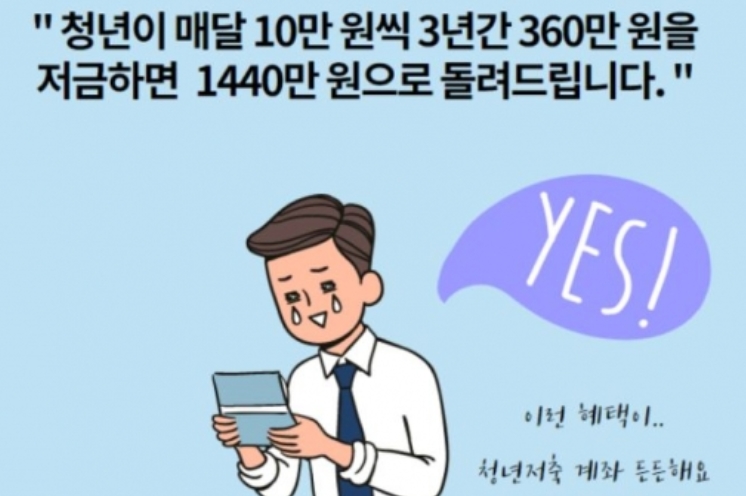 청년저축계좌는 차상위계층 청년이 매월 10만원을 저축하면 정부가 근로소득 장려금 30만원을 매칭해 3년뒤 1440만원을 모을 수 있게 한 저축 상품입니다.