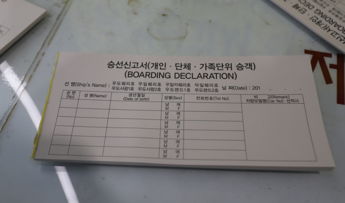 1. 승선신고서는 2부(갈 때, 올 때) 필요하기 때문에 작성하시면 됩니다.