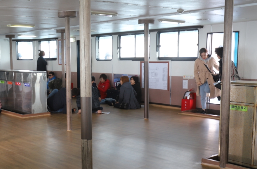 이날 바람이 어찌 세게 불던지 밖에 있는 것도 10여분!! 저는 배안에서 대기하기로 하였습니다. ㅎㅎ 다들 잠깐 구경하다가 안에 들어와 앉아서 대화를 하고 계시더라고요!!