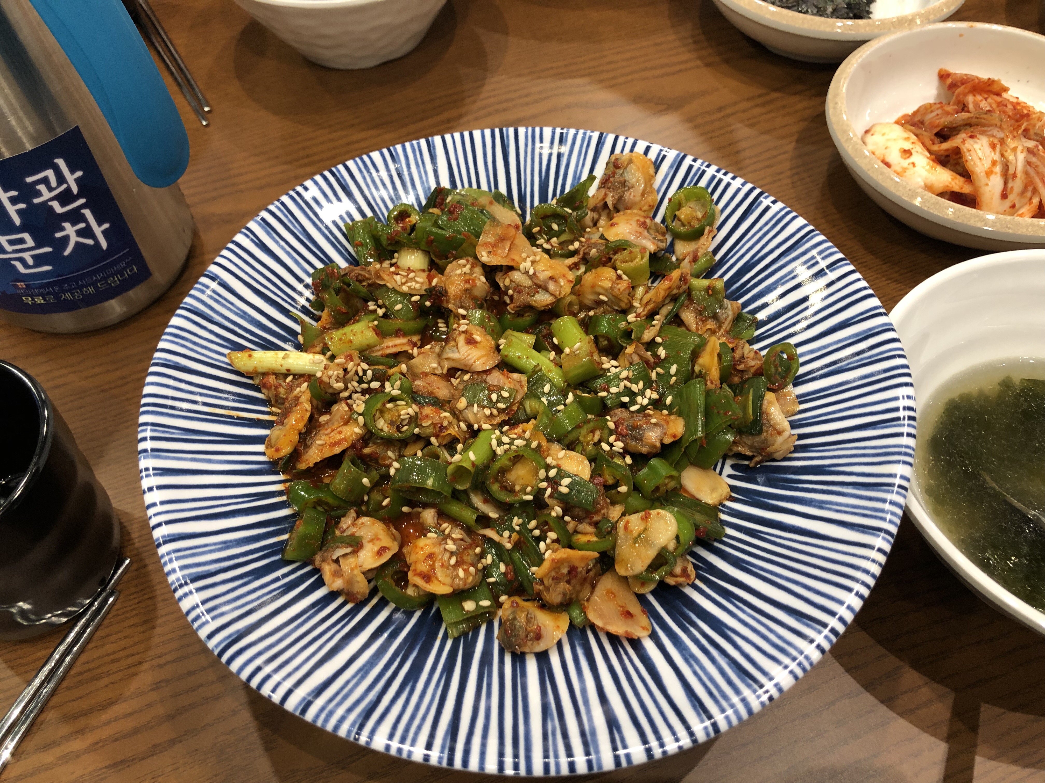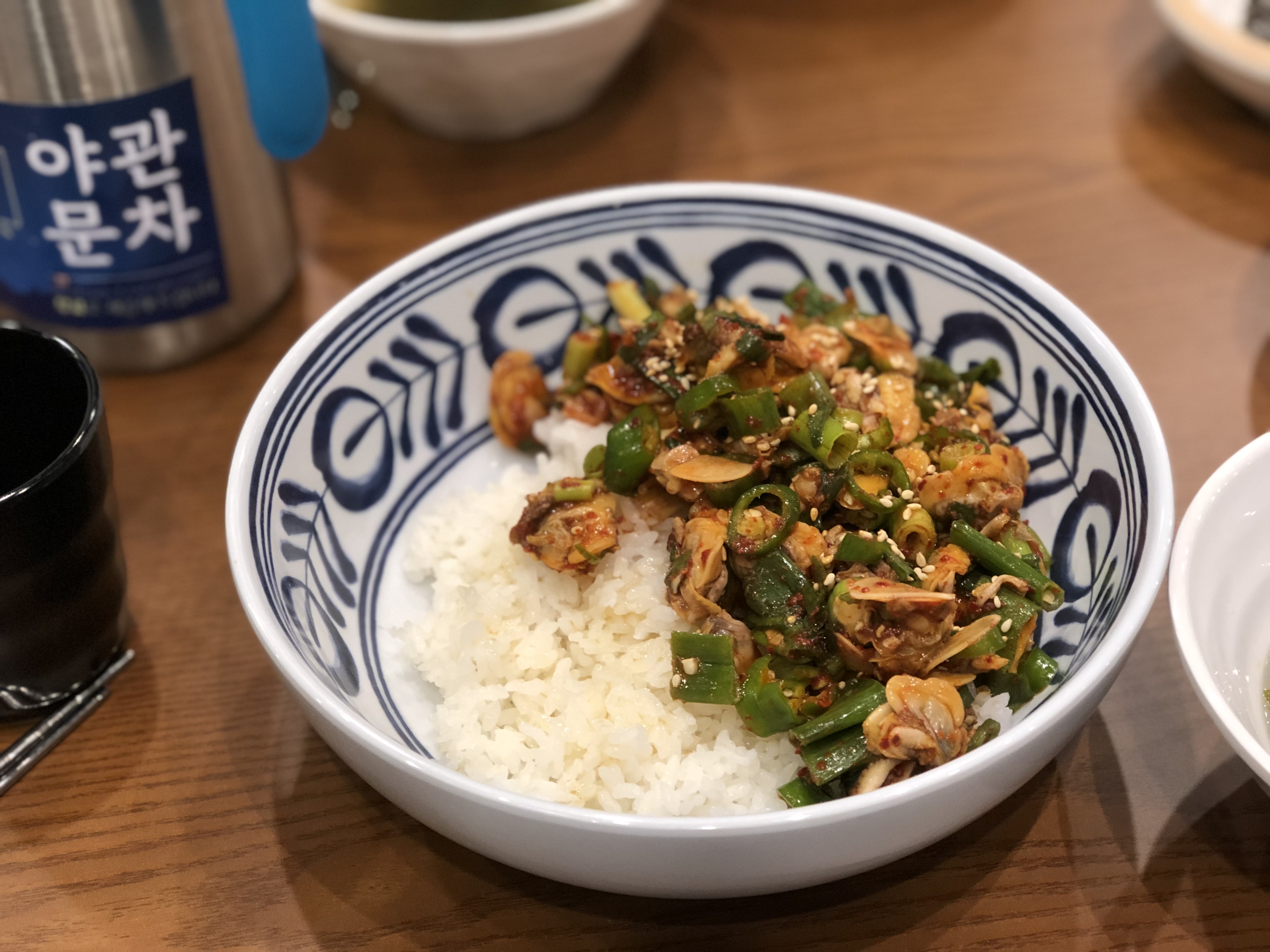 꼬막비빔밥이 나왔습니다!! 꼬막과 밥이 따로 나오는데 꼬막은 양념이 되어서 고추와,파,마늘 베이스로 나왔어요