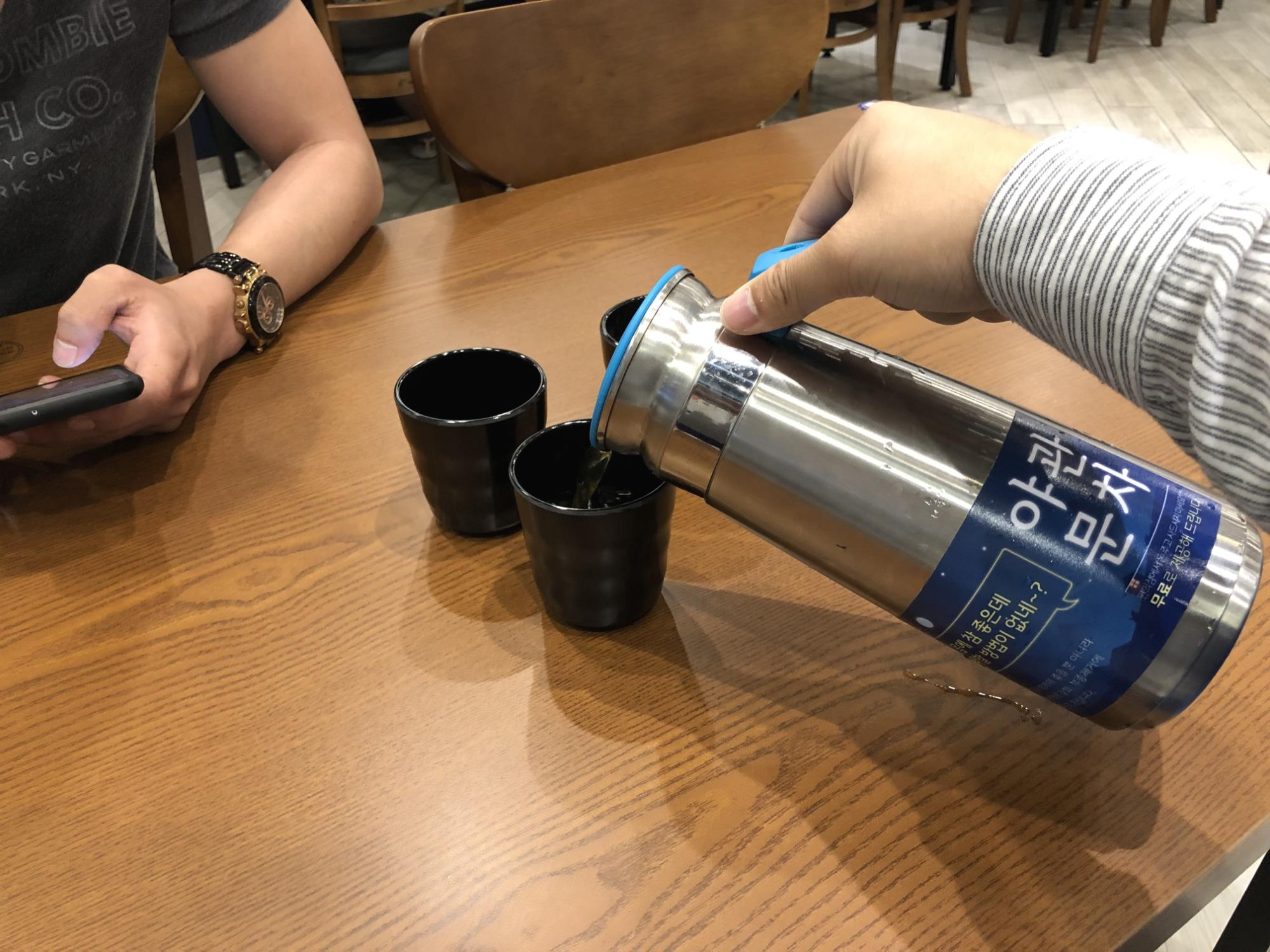 자리에 앉으면 물을 가져다 주시는데 남자한테 좋다는 야관문차! ㅋㅋㅋ 많이 먹었습니다 그냥 보라차 같았어요