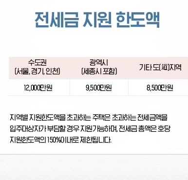 - 월임대료 : 전세지원금 중 임대 보증금을 제외한 나머지 금액에 대하여 연 1%~3% 이자 부담
