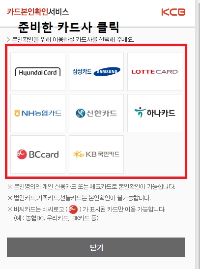 앱카드는 어플을 설치해야하는 번거로움이 있기 때문에 준비한 카드정보로 본인을 확인하도록 하겠습니다.