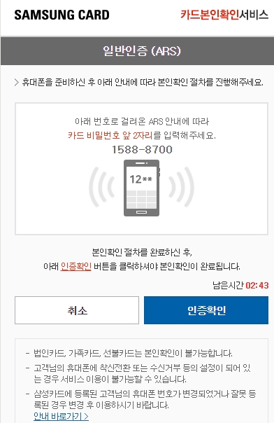 휴대폰번화와,카드번호 그리고 이용약관및 개인정보 제공동의가 필요합니다. 정보를 입력하면 ARS로 인증을 하시면 돼요