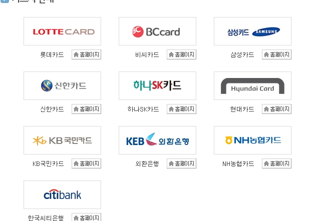 내가 사용하는 카드사8개 회사중 사용하는 카드를 클릭 하도록 하겠습니다. 저는 삼성카드를 이용하기 때문에 삼성키드를 클릭하도록 하겠습니다. 본인에 맞는 카드 회사를 클릭하겠습니다.