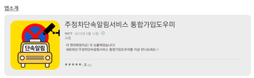 플레이스토어,앱스토어에 주정차단속 알림서비스 통합가입도우미를 검색후 설치를 하도록 하겠습니다.