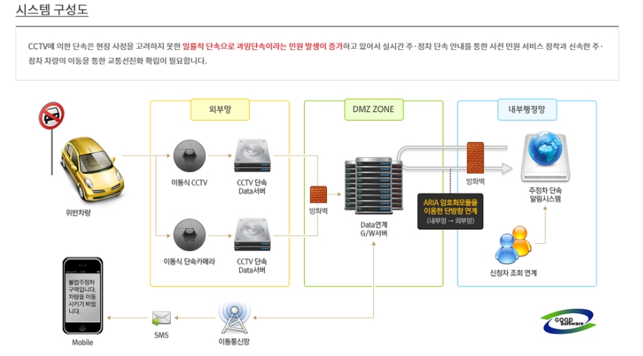 이동식 카메라가 차량번호와 시간장소등을 1회차 찍은후 서버로 전송됩니다. 그리고 1회차로 운전자에게 경고의 문자 메세지를 전달하는거라고 보시면 됩니다.