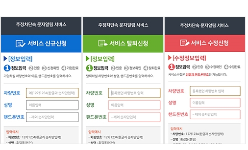 주차 알림 문자 서비스 (PC 신청) (http://www.parkingsms.co.kr/)