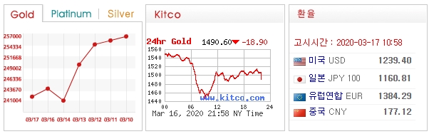 미국 뉴욕증시는 신종코로나로 인하여 최악의 폭락사태를 기록하고 있었는데 안전자산으로 부각 돼었던 금마자 하락세를 나타나고 있는게 지금 실정입니다. 금값은 전일 거래보다 1.3% 하락하여 온스당 1497달러로 거래되고 있다고 합니다. 1500달러 이하로 떨어진건 작년 이후 처음이라고 합니다. 안전자산으로 각광받았던 금시세 이유는??? 안전자산과 위험자산을 계속 팔면서 현금화를 나서는 투매때문에 이러한 현상이 나타난거라고 합니다. 지금 모든 자산을 팔아 현금화 하자는 말이 오갈정도라고 합니다.