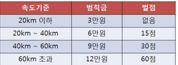 고속도로와 일반도로의 과태료는 조금씩 차이가 있습니다. 위표를 보고 과태료와 벌점을 확인해 보시면 좋겠습니다 ^^