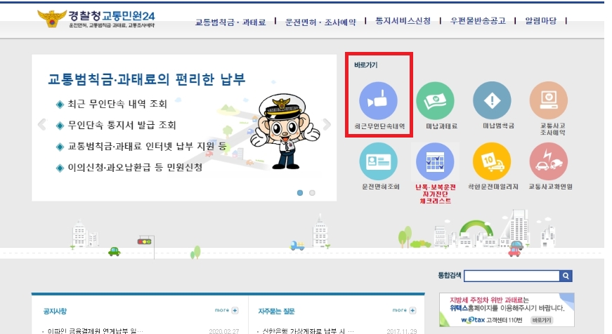 공인인증서 로그인을 하고 나면 바로 최근무인단속 내역을 확일 할 수 있습니다 위와같이 사각박스에 단속여부를 확인할 수 있는데 다행히 저는 단속이 되지 않았네요 ^^