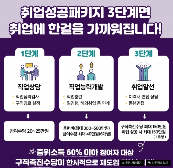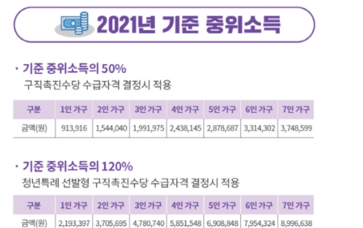 대한민국 정부가 저소득측및 청년에게 구직촉진수당 300만원과 취업프로그램을 지원하는 제도가 28일 사전 접수 진행된다고 합니다. 간단히 말씀드리면 4인가족 기준 저소득대상 월 243만원,청년 585만원이 넘지 않으면 수당을 받을수 있다고합니다. 나이 15세부터 ~69세까지 저소득 기준자입니다. 최대 40만명 정도 지원된다고 합니다.