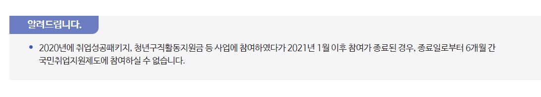 - 정부 지원 직접일자리 참여 중 또는 종료후 6개월 경과하지 않음 사람