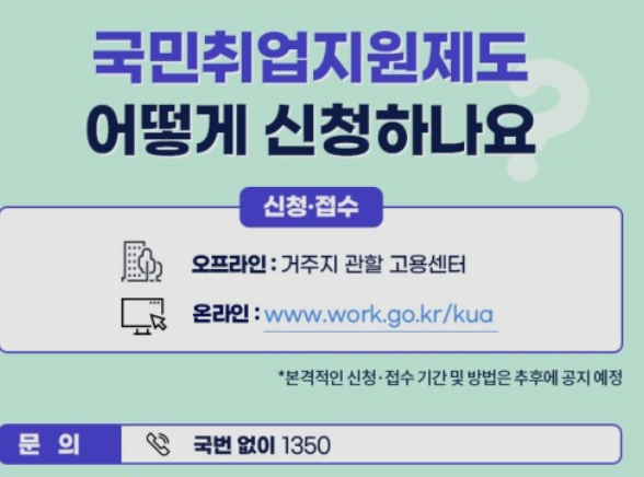 - 온라인 (www.work.go.kr/kua , 또는 www.국민취업지원제도.com ) 을 통해 신청가능