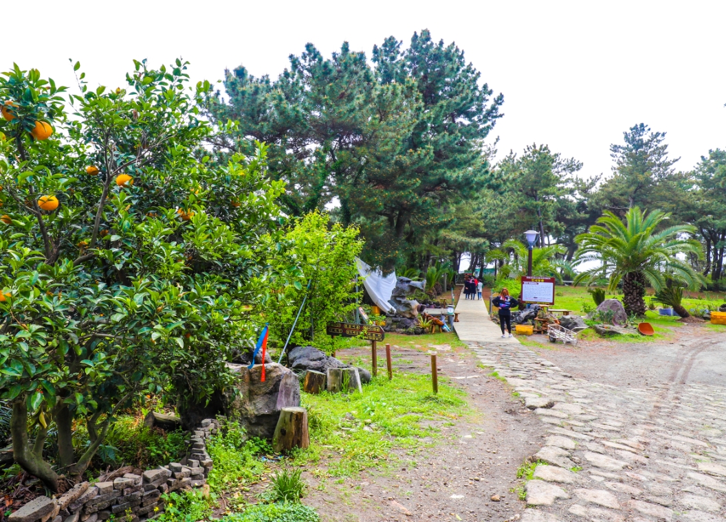 제주도라 그런지 중간에 제주 감귤이 노랗게 익어 있었어요!! 앞에 사람들이 보이는 길로 쭉 걸어가면 황우지 해안으로 갈 수 있습니다.