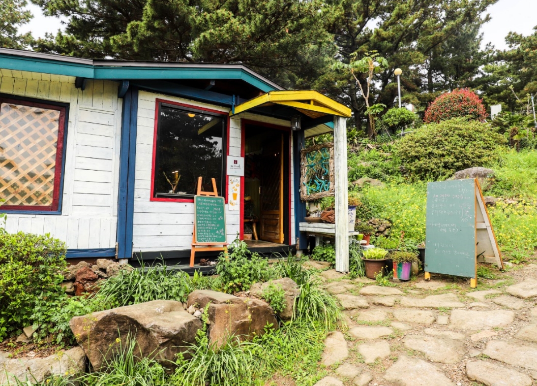 중간에 보면 황우지 해안 카페가 보이는데 보통 내려갈 때보단 내려갔다 올라올 때 힘들어서 시원한 음료를 한잔하러 많이 들리는 곳이에요!! 여름에는 스노클링 장비 대여와 샤워가 가능한 곳입니다.