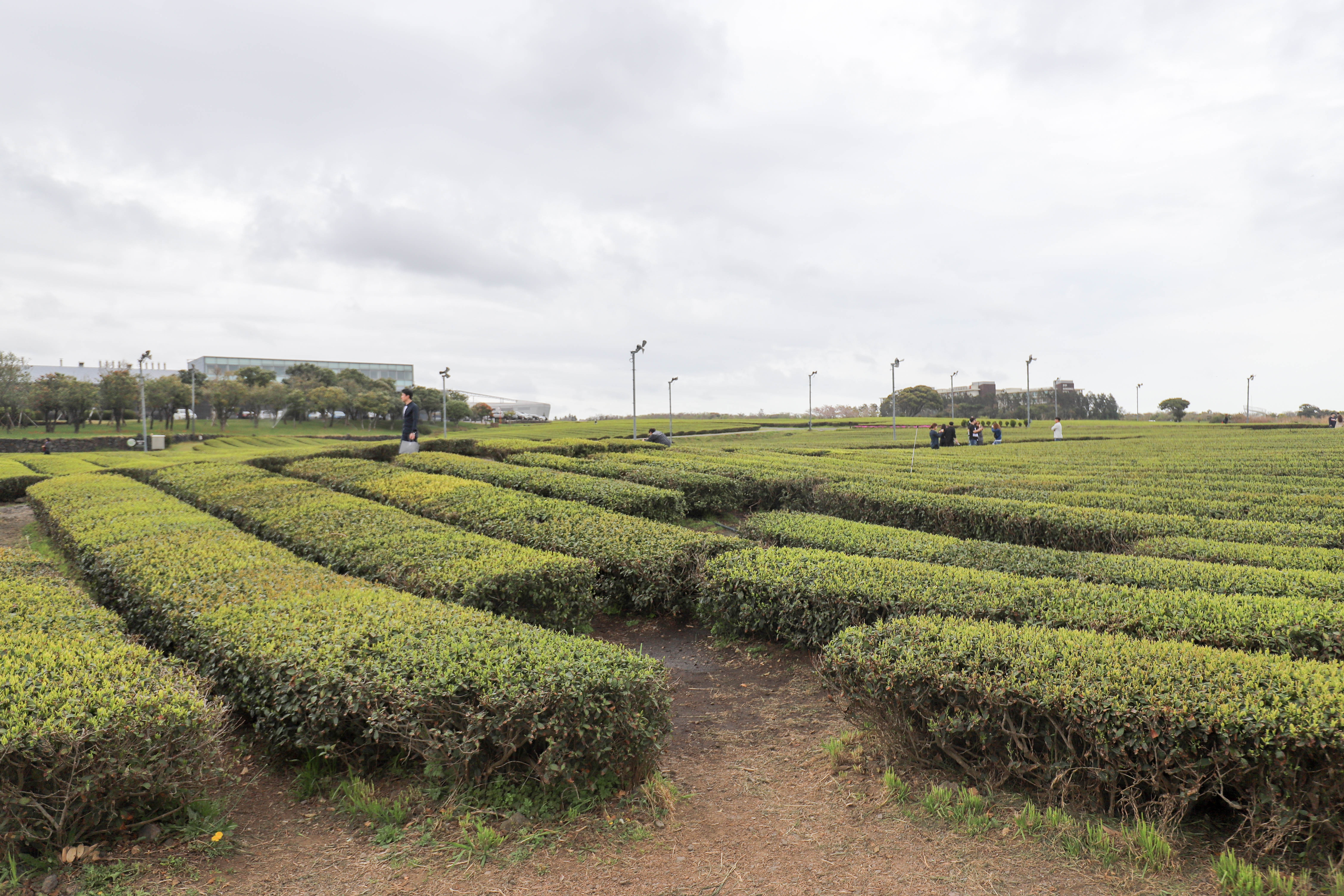 부드러운 녹차 아이스크림을 먹고 바깥에 있는 녹차 밭으로 향했습니다.