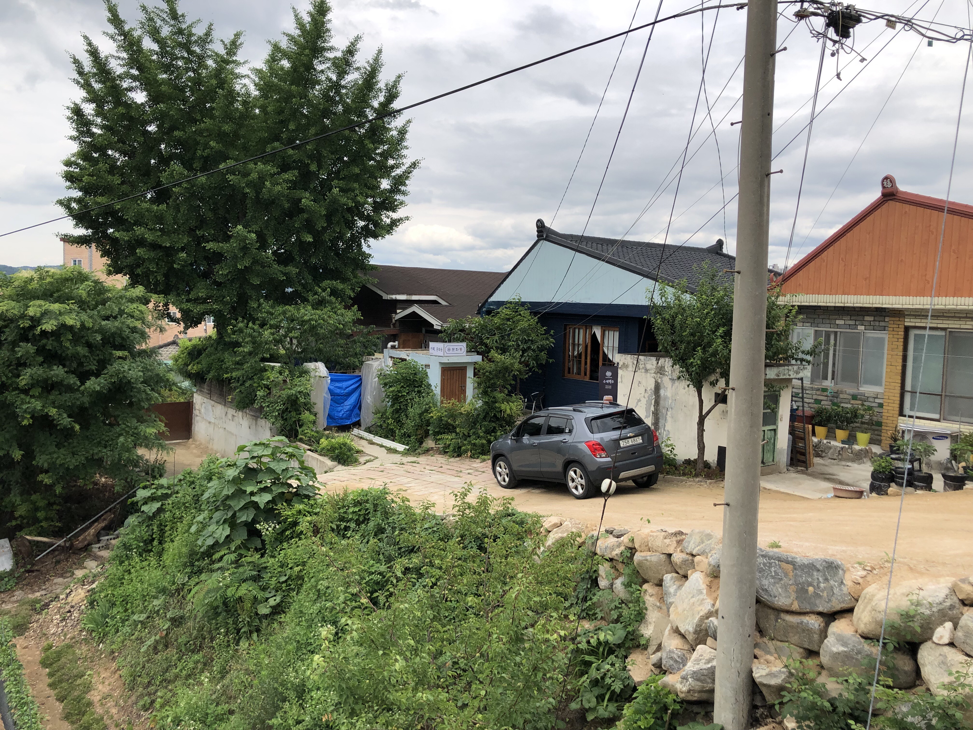 럭키아파트 뒷편에 위치해 있는곳으로 이런곳에 카페가 있어?? 의외의 장소에 있어서 조금 놀랐습니다. 앞에는 밭뷰가 펼쳐져 있고 신기한 위치입니다. 요즘 오래된 건물들을 다시 재인테리어해서 새로운 공간으로 재탄생하는게 유행인가봅니다. 어두운 블루 색이 오래된 건물과 너무 잘어울리더라구요 주차할공간이 많이 없었는데 다행히 자리가 있어서 주차 후 안쪽으로 들어갔습니다.
