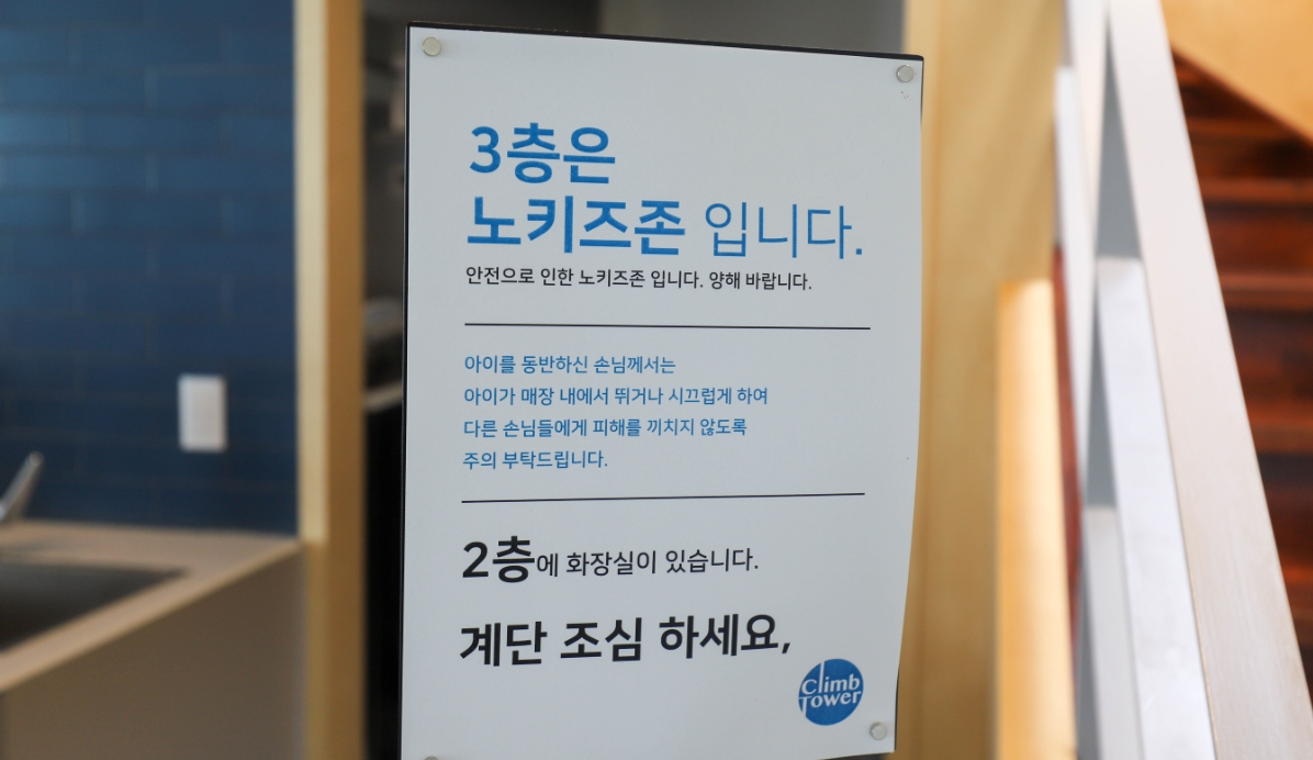 뛰어놀면 다른 손님에게 피해가 갈 수 있어서 3층만 노 키즈라고 하네요