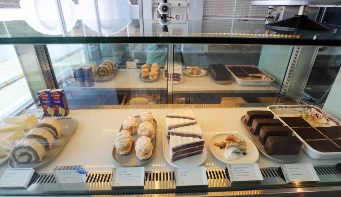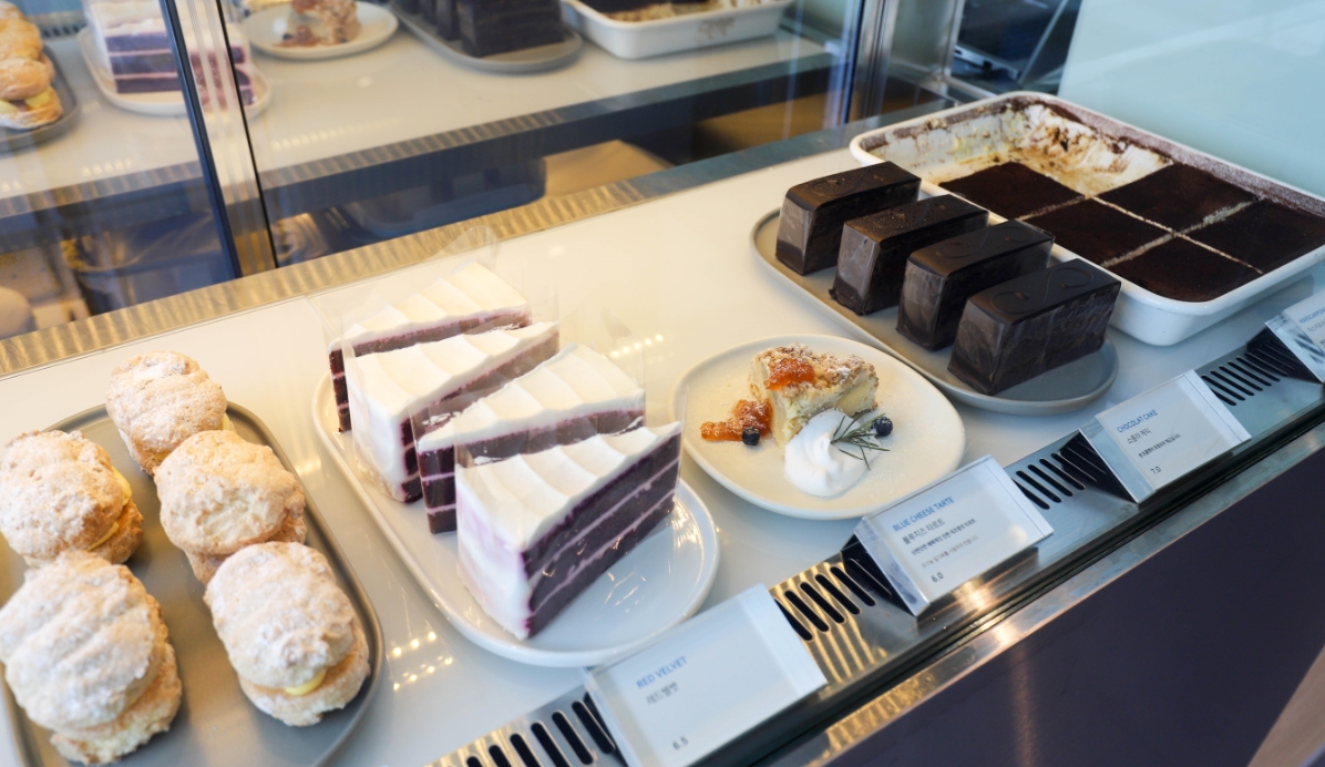 카페에는 각종 케이크와 빵들이 많이 있었습니다. 주말에는 빵들이 다 팔리는 경우가 많다고 하더라고요