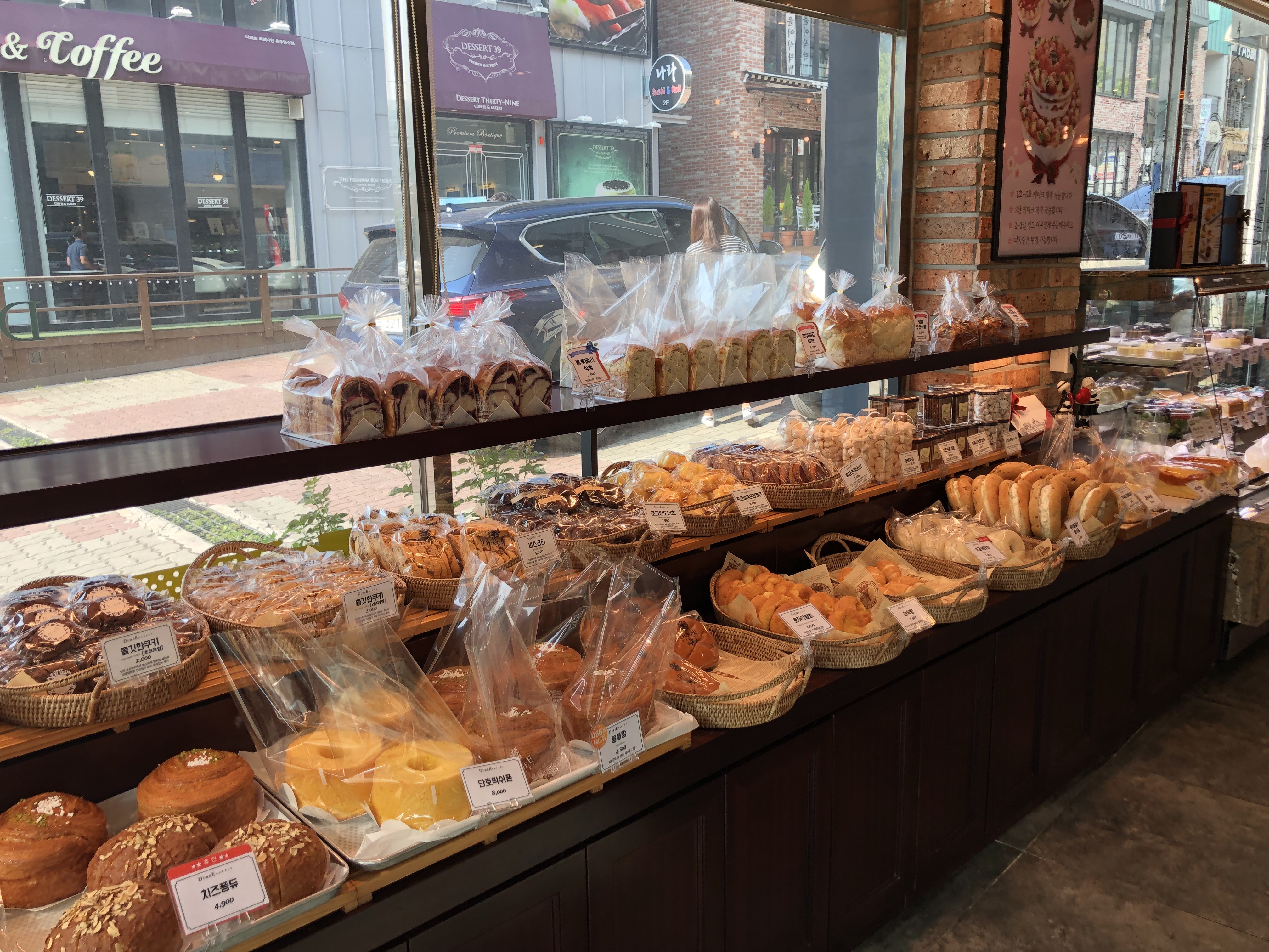 그리고 안쪽에는 싱싱한 딸리고 만들어진 딸리 생크림 케익부터,치즈케익,티라미슈 등등이 진열 되어있습니다.