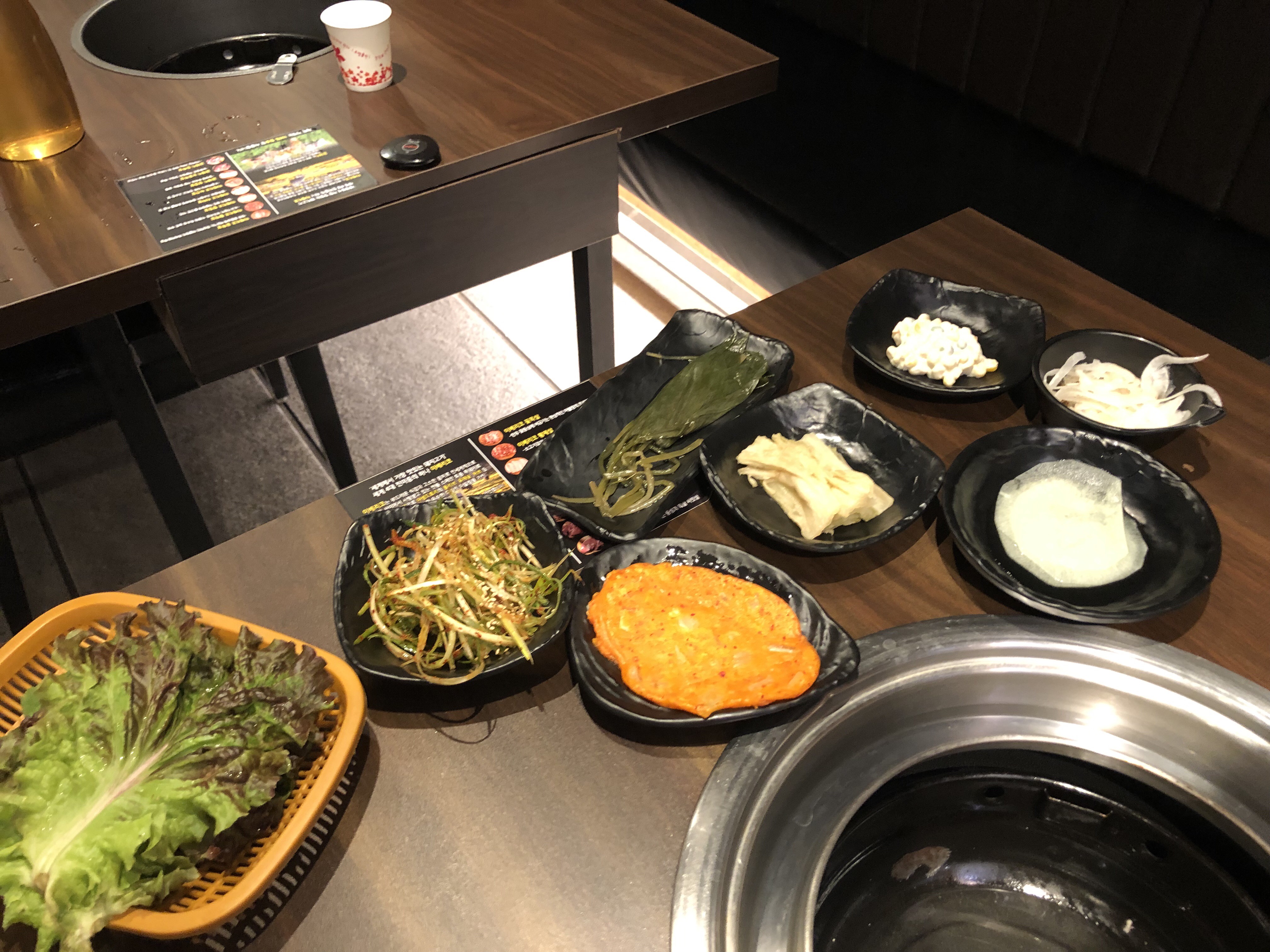 화장실을 다녀왔더니 기본 반찬으로 세팅 되었습니다. 상추,파절이,전,명이나물,백김치 등등으로 나왔어요!