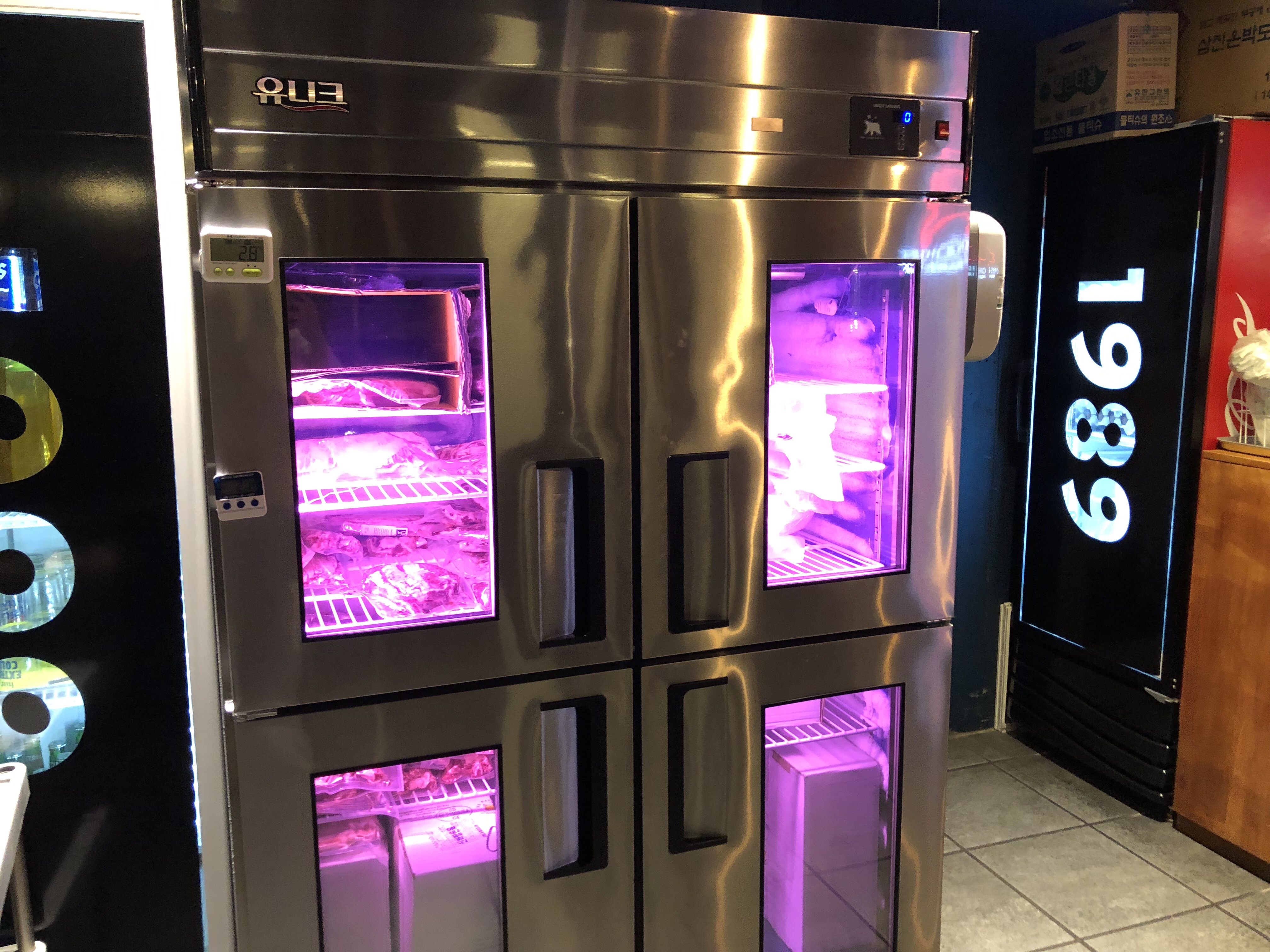 많이 먹으려고 화장실 가던도중 발견한 이베리코 고기 숙서 냉장고 입니다>! 안에는 먹음직 스러운 이베리코 고기가 가득 ㅋㅋㅋ 한덩이 몰래 가져 가고 싶은 마음 ^^