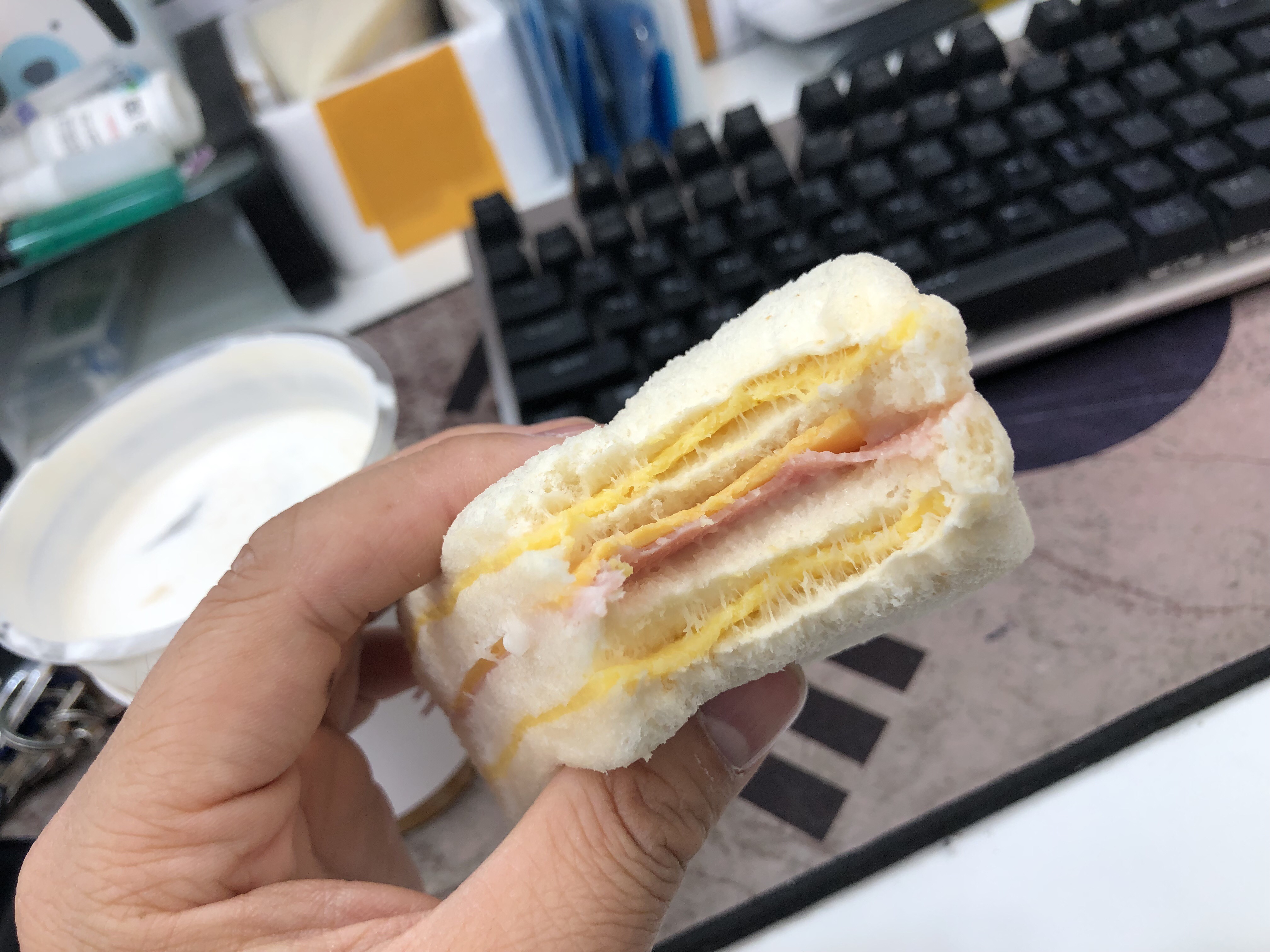 가게 도착해서 샐러드는 냉장고에 들어갔고 티앙웨이 샌드위치를 먹어 보았습니다 생각보다 크기가 작았어요 ㅋㅋ 두개 먹었는데 아직 배고프다는 ㅠㅠ 혼자 먹으려면 한 4개는 먹어야 할거같습니다.