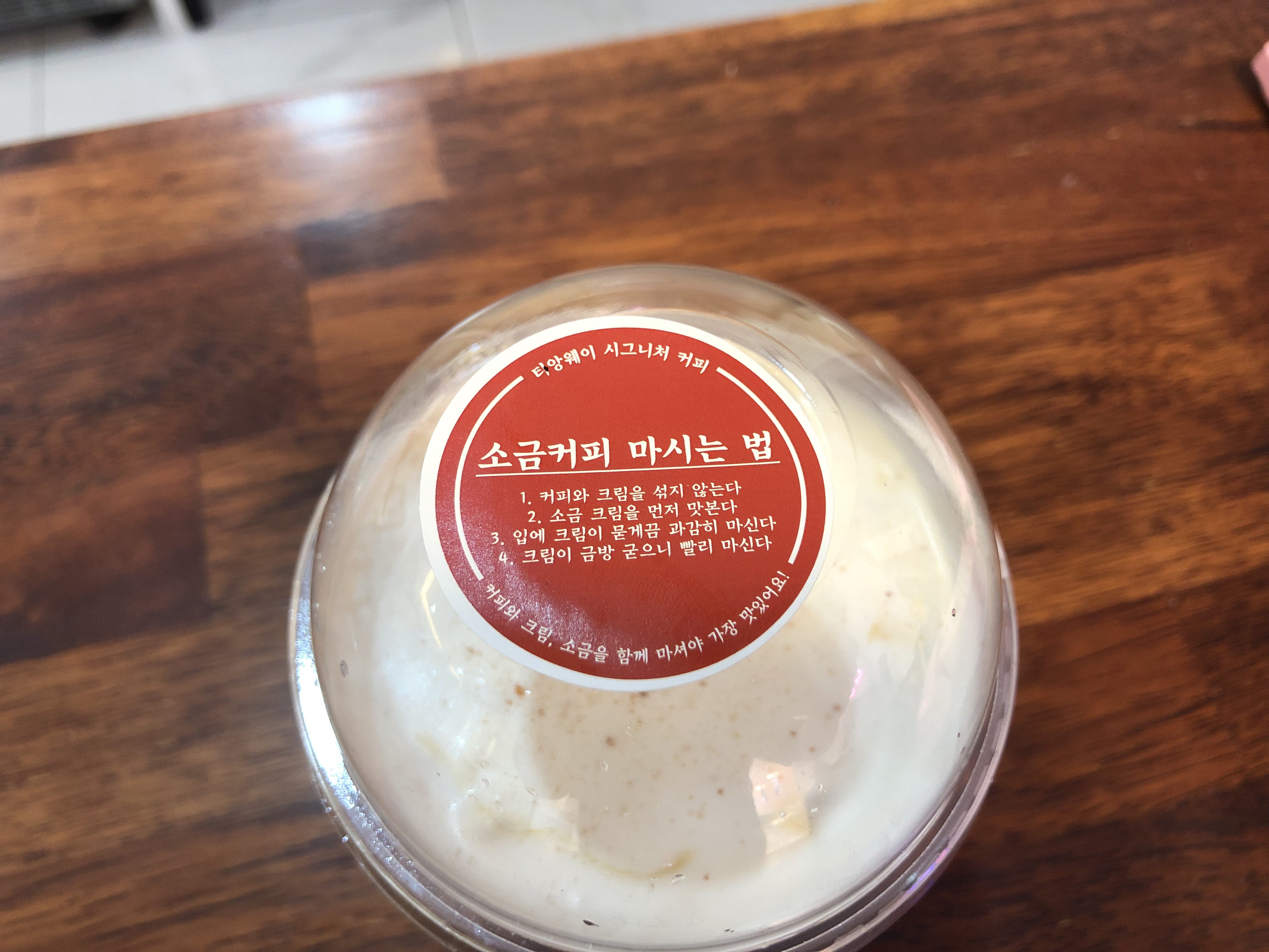 소금 커피를 예전에 먹었을 때 정말 맛있게 먹었던 기억이 나서 주문하였는데 소금커피라기보단 크림커피라고 생각하시면 될거같아요 제가 예전에 먹었을땐 커피에 소금이 뿌려져 있었는데 생각했던 비주얼은 아니 였지만 그래도 달달하니 맛있었어요 소금 커피는 원래 짜야하는데 ㅋㅋㅋ 잘못만들었나 잘모르겠어요