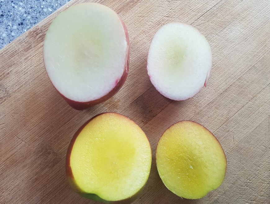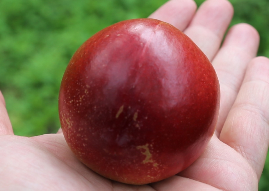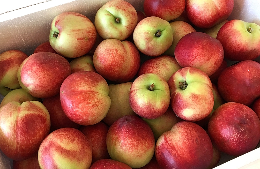 껍질에는 털이 없고 진홍색인 천도복숭아 모습이지만 속은 백도복숭아처럼 하얗고 정말 달달 합니다.