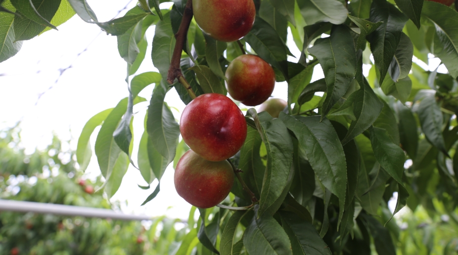 천도복숭아와백도복숭아장점을 반반씩 섞어 놓은 신기한 복숭아가 있습니다.