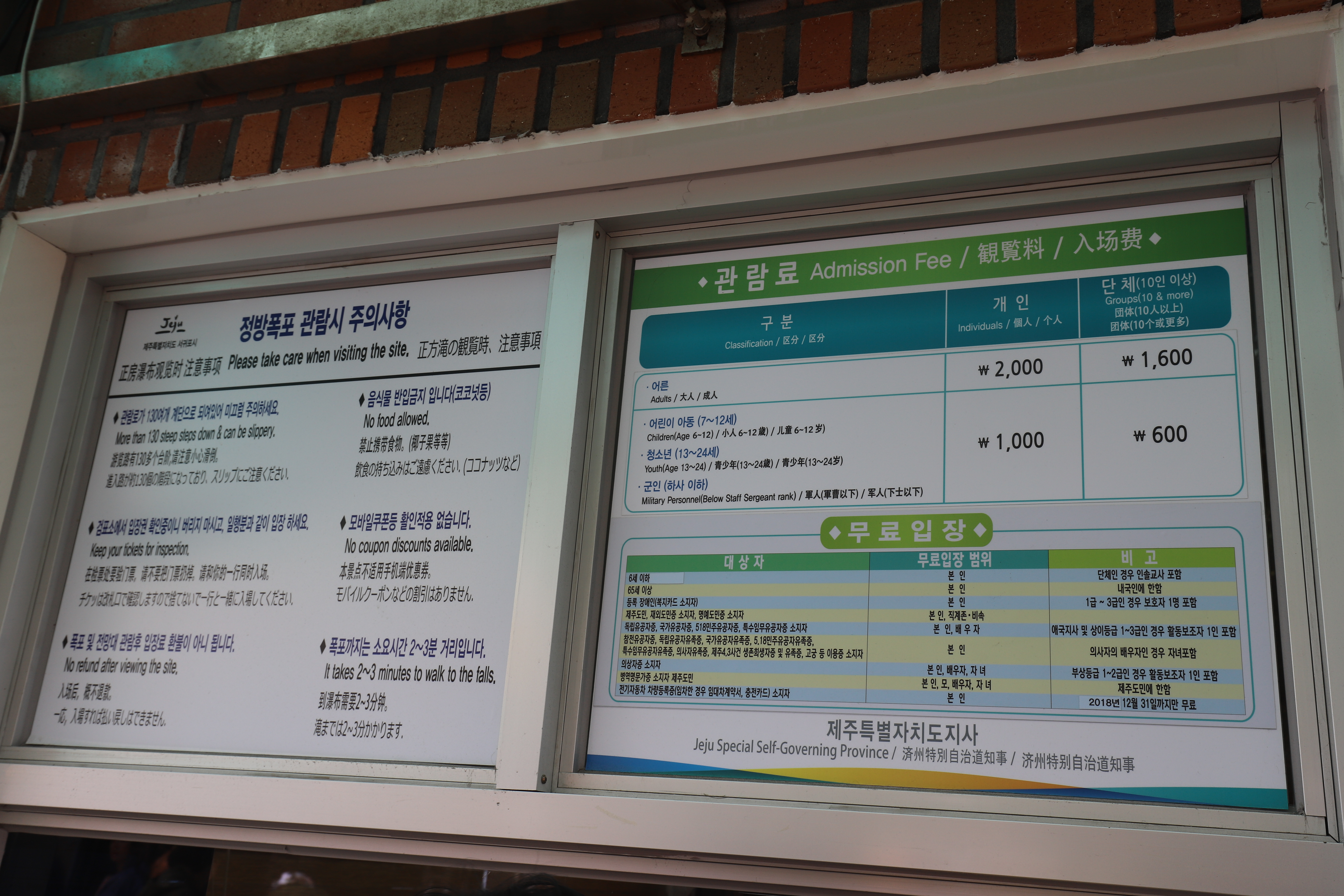 정방폭포 관람료는 제주 도민은 무료이고 일반 어른은 2000원 단체 1600원 어린이 청소년은 1000원 입니다.