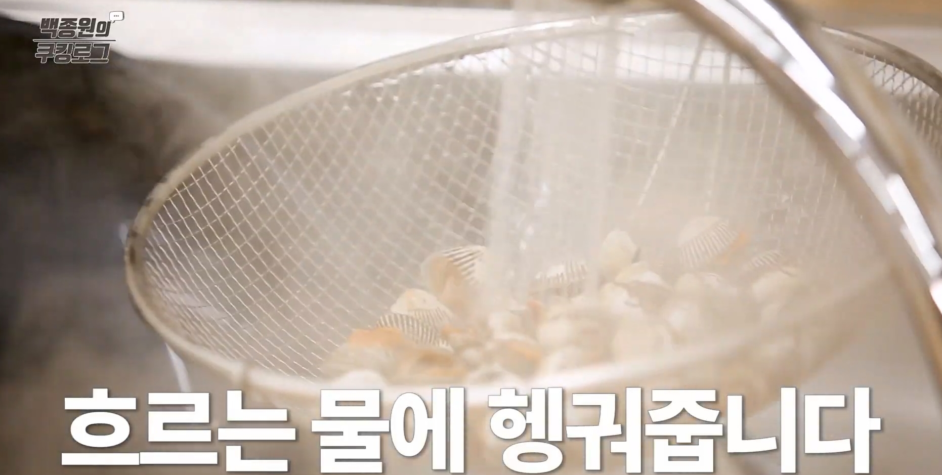 벌어진 꼬막은 흐르는 물에 행궈 주도록 하겠습니다.