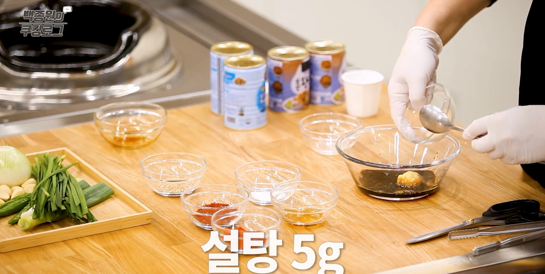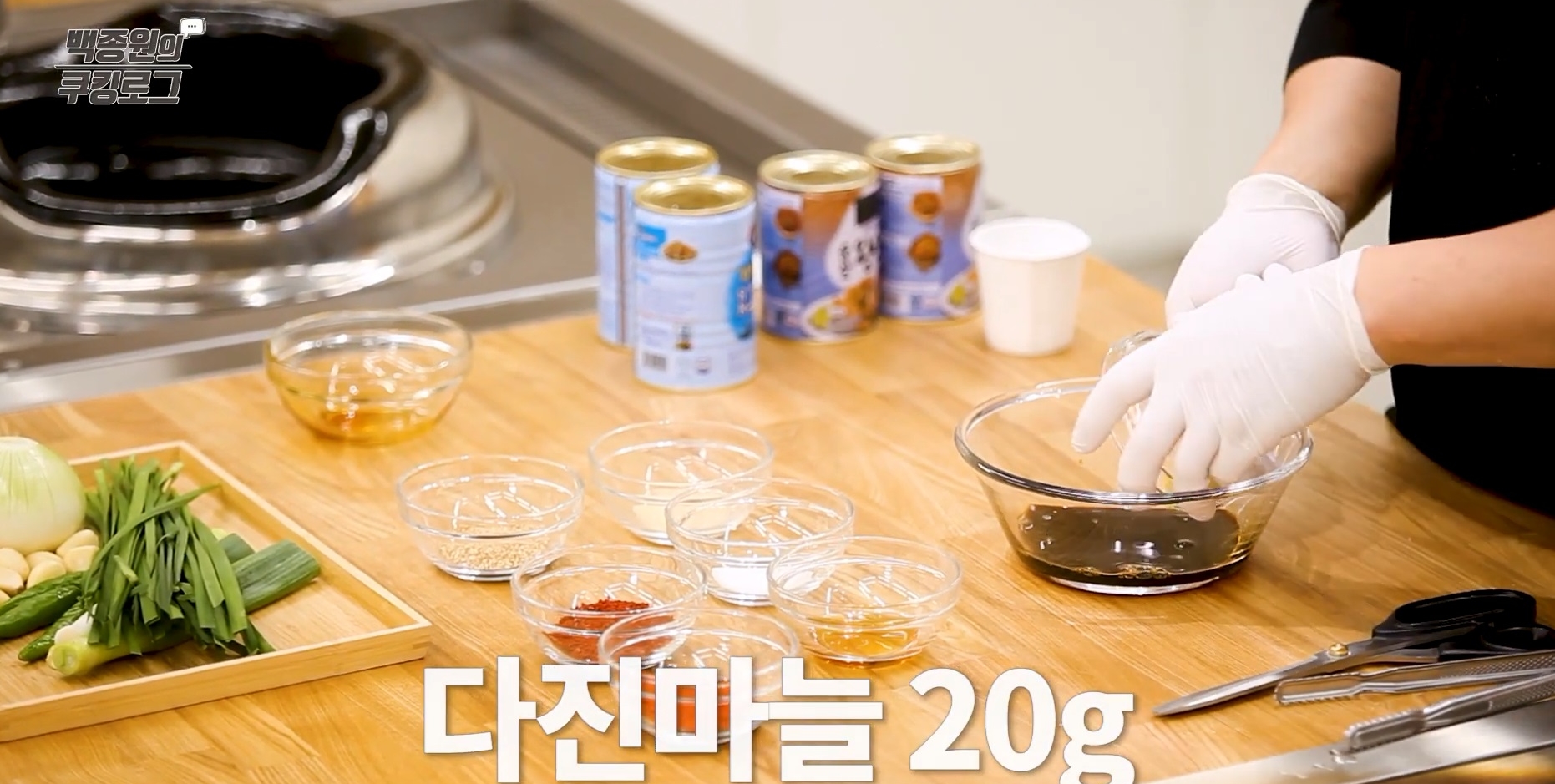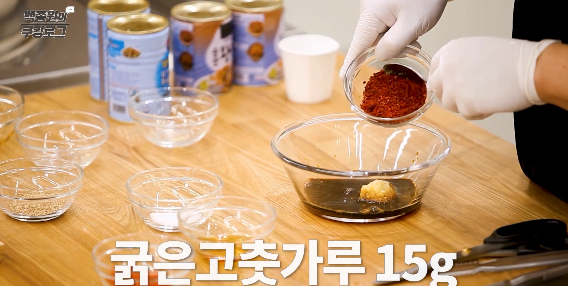 - 다진마늘, 깨소금, 고운고춧가루,굵은고춧가루,설탕,참기름,msg