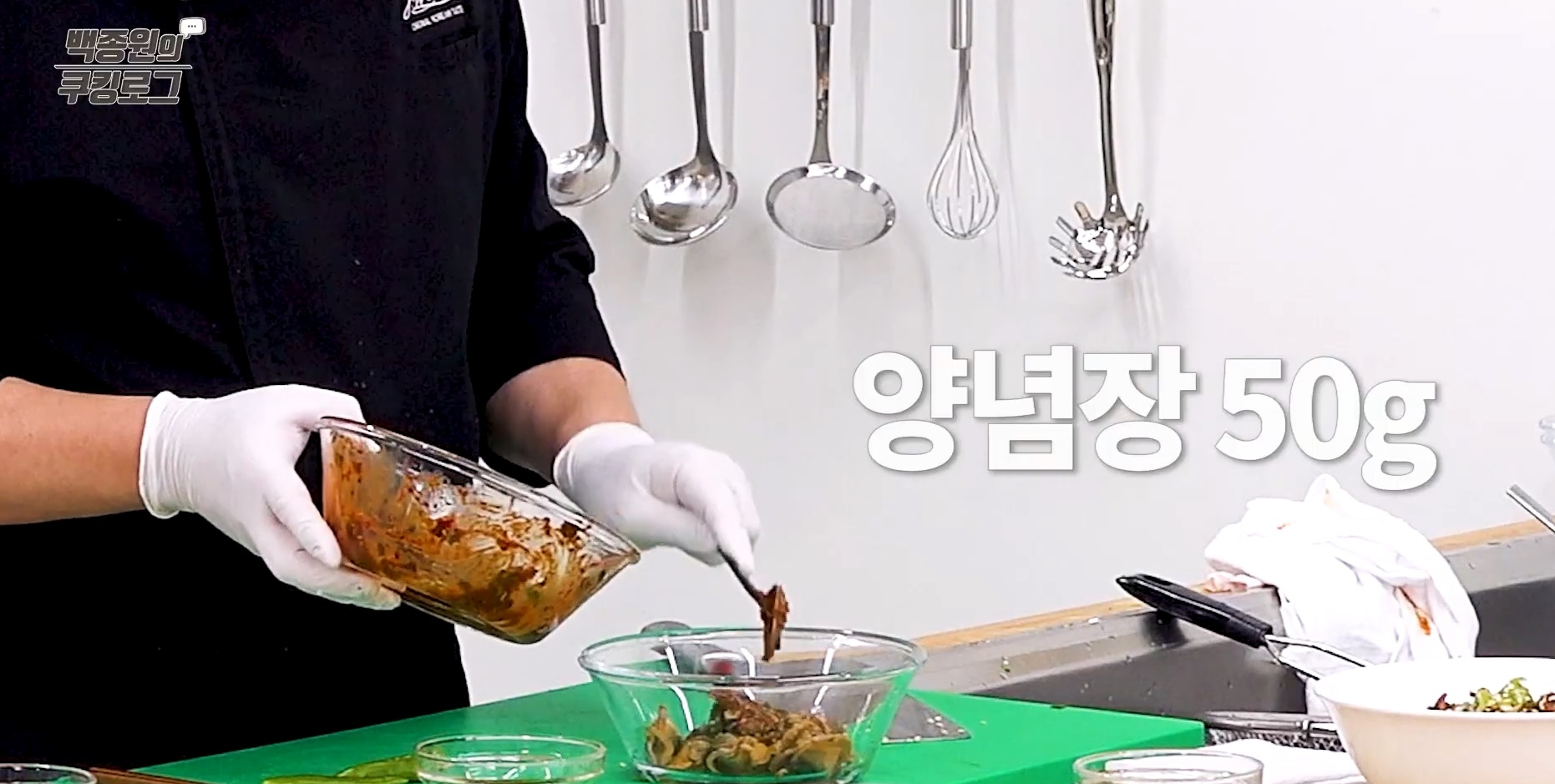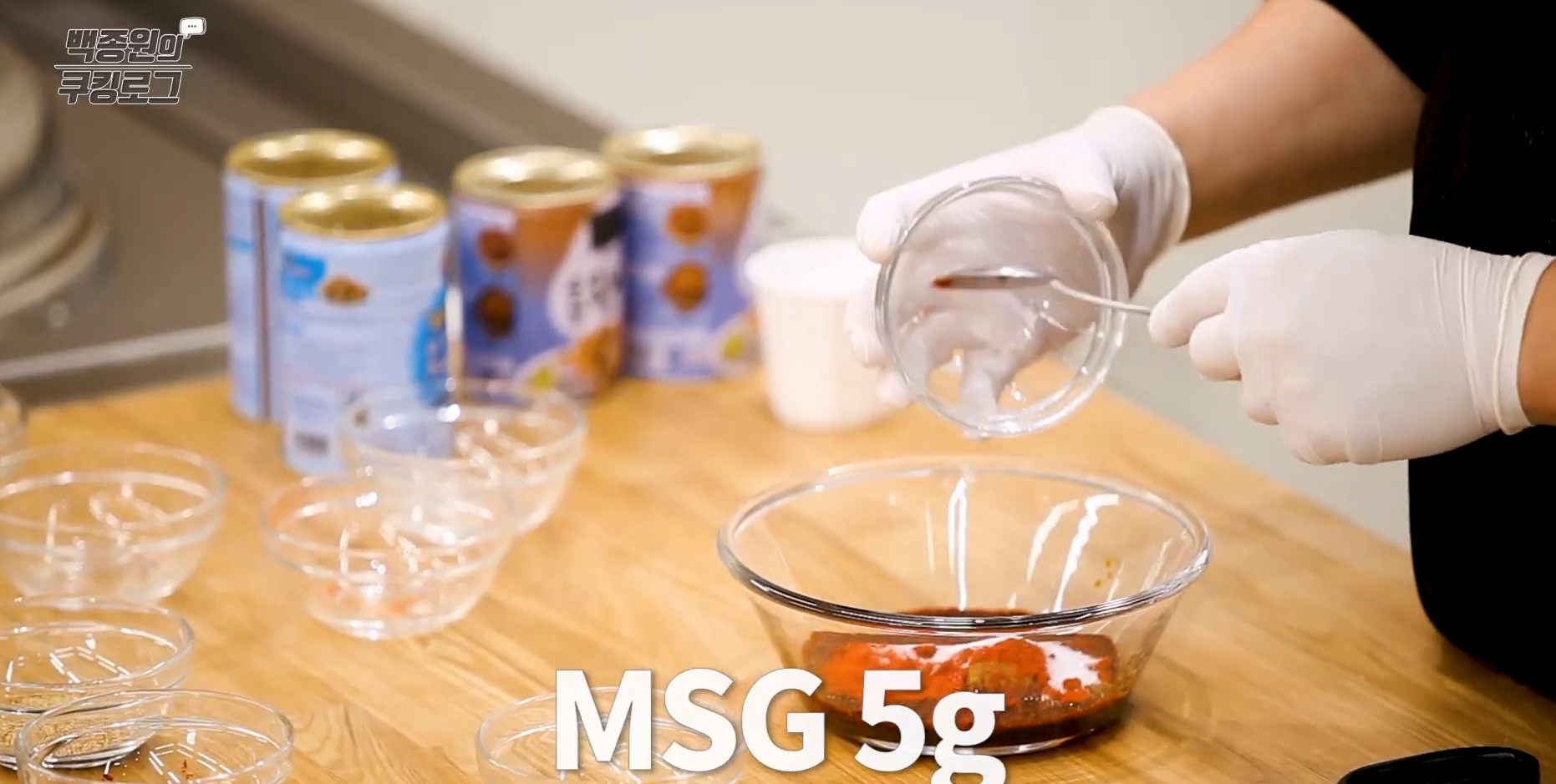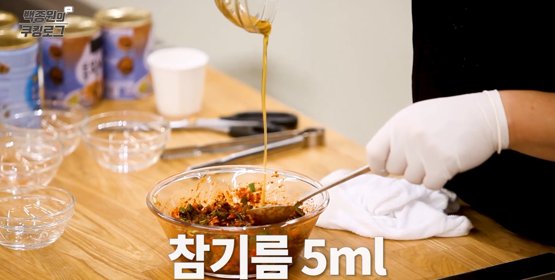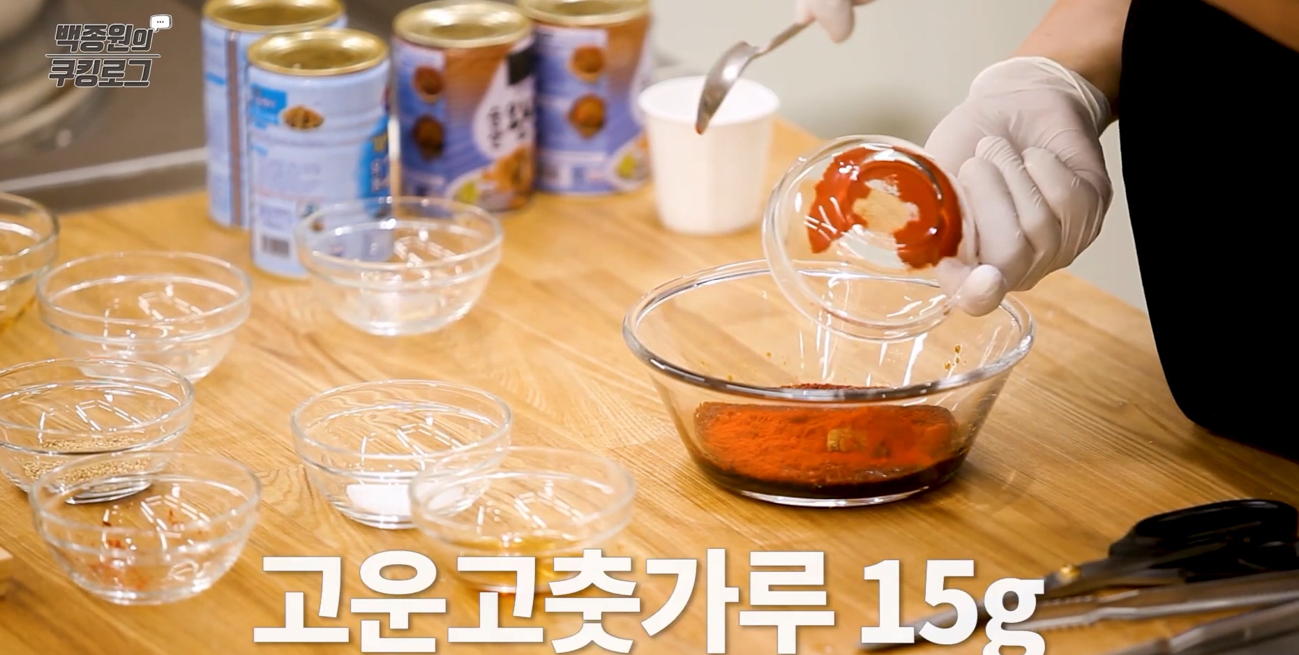 - 다진마늘, 깨소금, 고운고춧가루,굵은고춧가루,설탕,참기름,msg