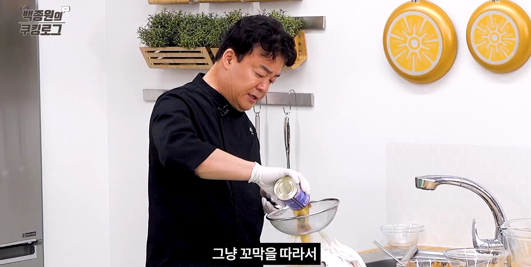 골뱅이고 채로 걸러주도록 하겠습니다.