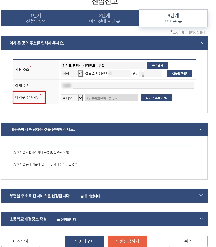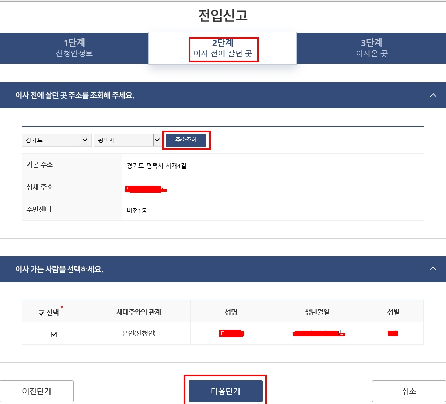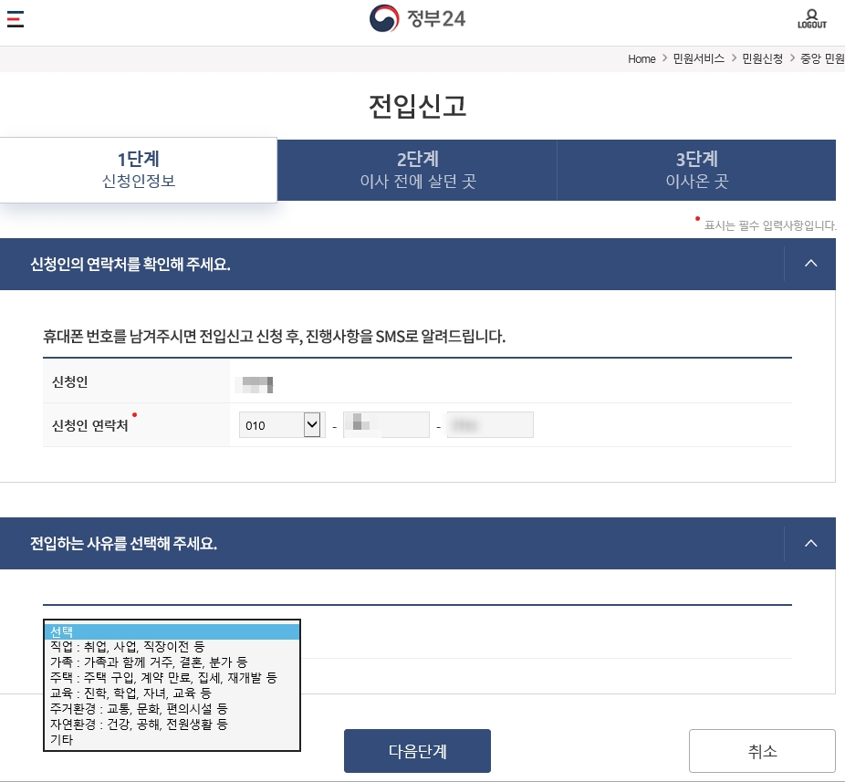 전입하는 사유를 선택후 다음단계로 이동할게요