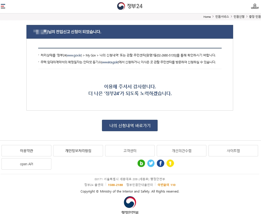 신청인 정보와 연락처를 입력하도록 하겠습니다.