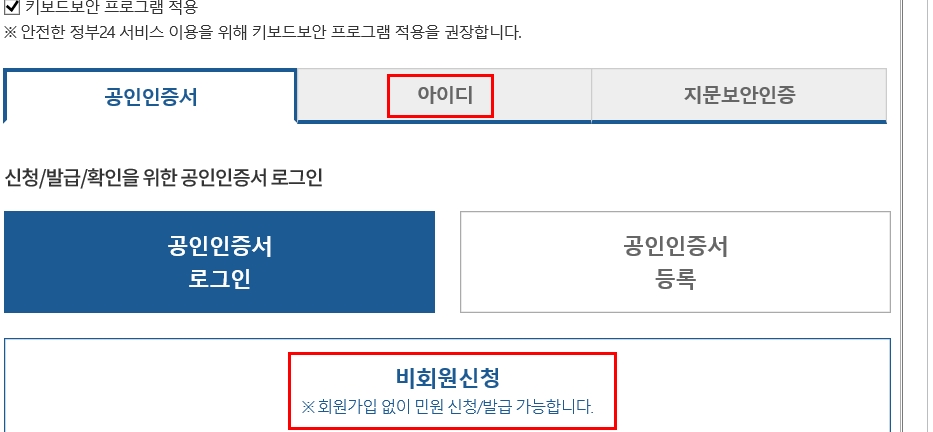 회원 가입 없이 민원 신청/발급이 가능합니다.